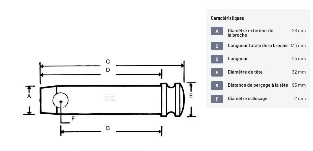 𝐂𝐚𝐫𝐚𝐜𝐭𝐞́𝐫𝐢𝐬𝐭𝐢𝐪𝐮𝐞𝐬 : Zingué - Simple 𝐀 : 𝐃𝐢𝐚𝐦𝐞̀𝐭𝐫𝐞 𝐞𝐱𝐭𝐞́𝐫𝐢𝐞𝐮𝐫 𝐝𝐞 𝐥𝐚 𝐛𝐫𝐨𝐜𝐡𝐞 : 28 mm 𝐂𝐚𝐭𝐞́𝐠𝐨𝐫𝐢𝐞 : 2 𝐂 : 𝐋𝐨𝐧𝐠𝐮𝐞𝐮𝐫 𝐭𝐨𝐭𝐚𝐥𝐞 𝐝𝐞 𝐥𝐚 𝐛𝐫𝐨𝐜𝐡𝐞 : 133 mm 𝐃 : 𝐋𝐨𝐧𝐠𝐮𝐞𝐮𝐫 : 115 mm 𝐄 : 𝐃𝐢𝐚𝐦𝐞̀𝐭𝐫𝐞 𝐝𝐞 𝐭𝐞̂𝐭𝐞 : 32 mm 𝐁 : 𝐃𝐢𝐬𝐭𝐚𝐧𝐜𝐞 𝐝𝐞 𝐩𝐞𝐫𝐜̧𝐚𝐠𝐞 𝐚̀ 𝐥𝐚 𝐭𝐞̂𝐭𝐞 : 95 mm 𝐅 : 𝐃𝐢𝐚𝐦𝐞̀𝐭𝐫𝐞 𝐝'𝐚𝐥𝐞́𝐬𝐚𝐠𝐞 : 12 mm