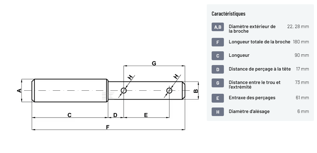 Axe de bras inférieur 22mm/28mm Cat.1/2
