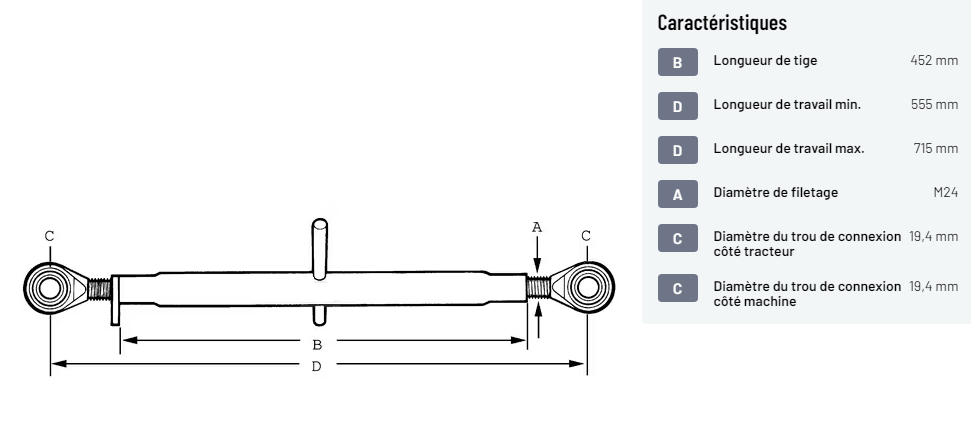 C : Diamètre du trou de connexion côté tracteur : 19,4 mm
