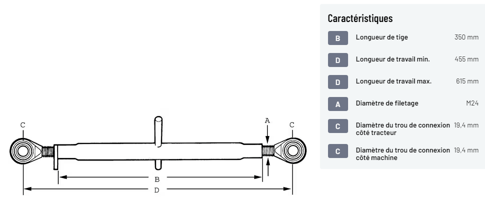 C : Diamètre du trou de connexion côté tracteur : 19,4 mm