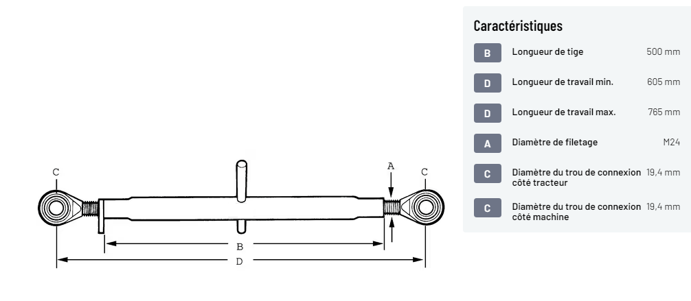 C : Diamètre du trou de connexion côté tracteur : 19,4 mm