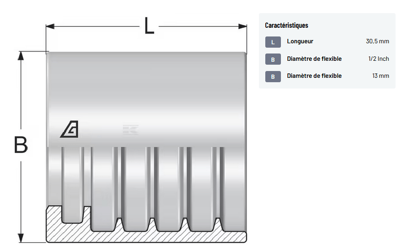𝐁 𝐃𝐢𝐚𝐦𝐞̀𝐭𝐫𝐞 𝐝𝐞 𝐟𝐥𝐞𝐱𝐢𝐛𝐥𝐞 : 1/2 Inch