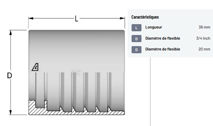 𝐃 𝐃𝐢𝐚𝐦𝐞̀𝐭𝐫𝐞 𝐝𝐞 𝐟𝐥𝐞𝐱𝐢𝐛𝐥𝐞 : 3/4 Inch