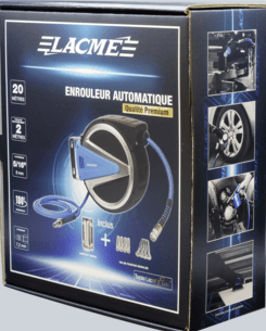 - Raccord rapide gros débit - Tuyau Lacm'Flex de liaison 2 m - Support orientable mural 180° - Vis pour support (enrouleur + mural)