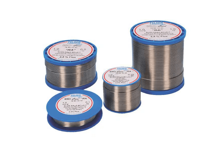Fil à brasage tendre en flux contenant des halogènes pour les brasages manuels dans l'électrotechnique