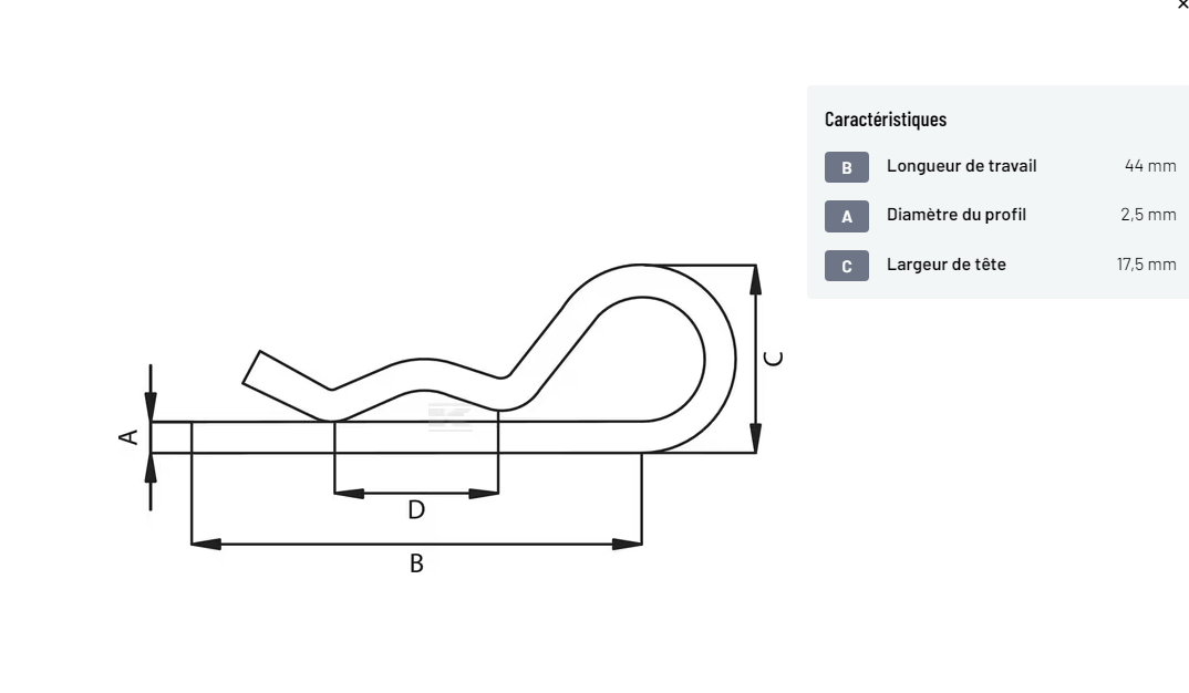 𝐂𝐚𝐫𝐚𝐜𝐭𝐞́𝐫𝐢𝐬𝐭𝐢𝐪𝐮𝐞𝐬 : Zinguée 𝐁 : 𝐋𝐨𝐧𝐠𝐮𝐞𝐮𝐫 𝐝𝐞 𝐭𝐫𝐚𝐯𝐚𝐢𝐥 : 44 mm 𝐀 : 𝐃𝐢𝐚𝐦𝐞̀𝐭𝐫𝐞 𝐝𝐮 𝐩𝐫𝐨𝐟𝐢𝐥 : 2,5 mm 𝐂 : 𝐋𝐚𝐫𝐠𝐞𝐮𝐫 𝐝𝐞 𝐭𝐞̂𝐭𝐞 : 17.5 mm