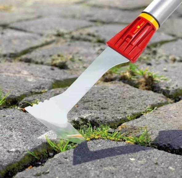 Ce grattoir de jardin fait partie de la gamme d'outils interchangeables Multi-Star. Le grattoir est en acier galvanisé et peint. Il élimine efficacement la mousse et les mauvaises herbes qui poussent entre les carreaux, les pavés et le long des bordures. Le grattoir est plus efficace grâce à l'angle droit. Cet outil peut également être utilisé pour enlever l'herbe sous le carter d’une tondeuse à gazon.