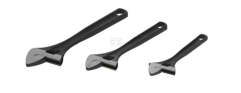 Jeu de trois clés à molette rangées dans un coffret avec échelle de mesure métrique. Cela vous permet de réaliser un réglable précis et de toujours disposer de la clé adaptée dans votre poche.