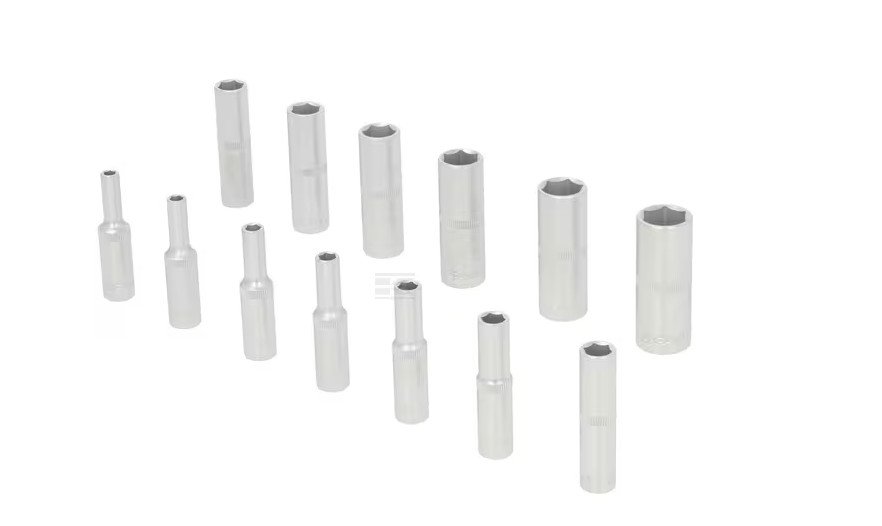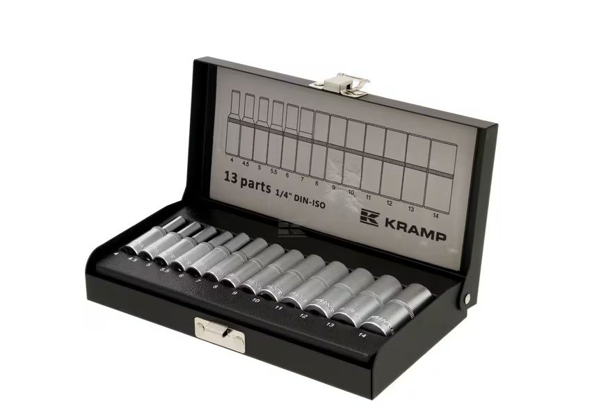 𝐃𝐞𝐬𝐜𝐫𝐢𝐩𝐭𝐢𝐨𝐧 𝐝𝐞́𝐭𝐚𝐢𝐥𝐥𝐞́𝐞 Ensemble de 13 douilles professionnelles de différentes tailles en acier au chrome-vanadium. Rangées dans un coffret en métal durable, solide et bien organisé. 𝐏𝐨𝐢𝐧𝐭𝐬 𝐟𝐨𝐫𝐭𝐬 Coffret en métal, utilisation durable et protection parfaite des outils Douilles solides en acier au chrome-vanadium Vue d’ensemble du contenu sur le couvercle pour une identification facile 𝐃𝐞́𝐭𝐚𝐢𝐥𝐬 𝐝𝐮 𝐩𝐫𝐨𝐝𝐮𝐢𝐭 𝐋𝐞 𝐤𝐢𝐭 𝐝𝐞 𝐜𝐨𝐦𝐩𝐨𝐬𝐞 𝐝𝐞 : Douilles six pans, version longue, 50mm 1/4" : 4,5, 5, 5,5, 6, 7, 8, 9, 10, 11, 12, 13, 14mm Coffret en métal case Module inserts en plastique solide