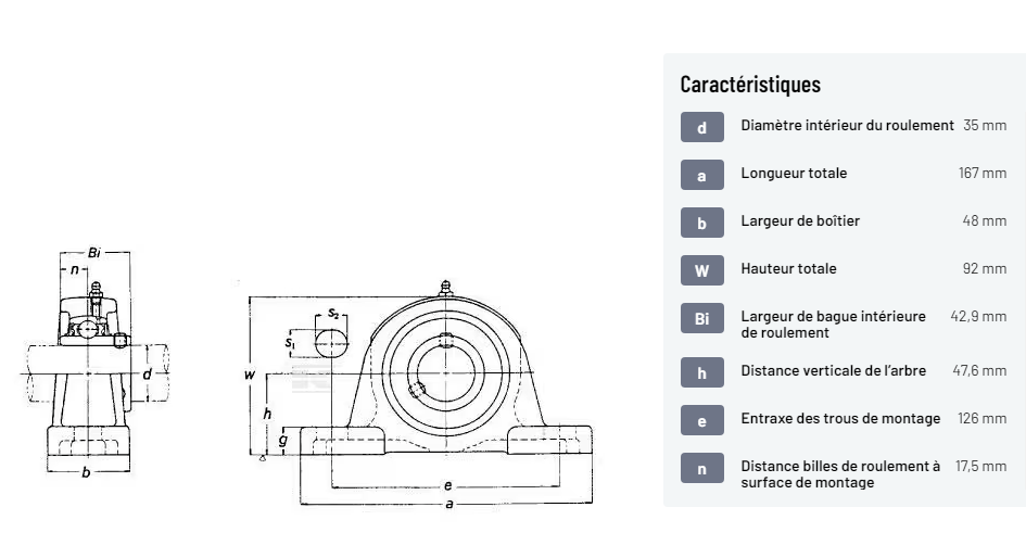 𝐝 : Diamètre intérieur du roulement : 35 mm