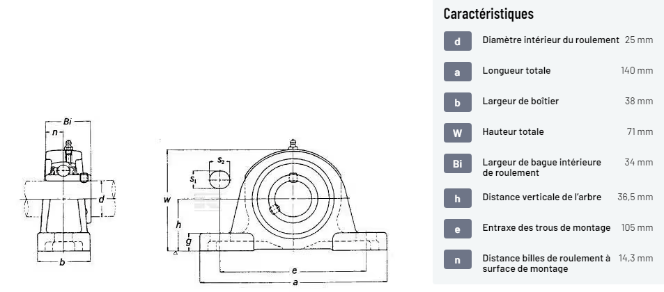 𝐝 : Diamètre intérieur du roulement : 25 mm