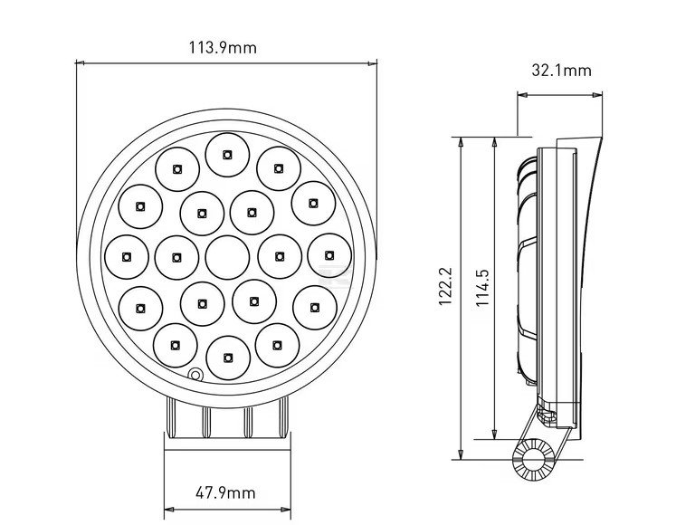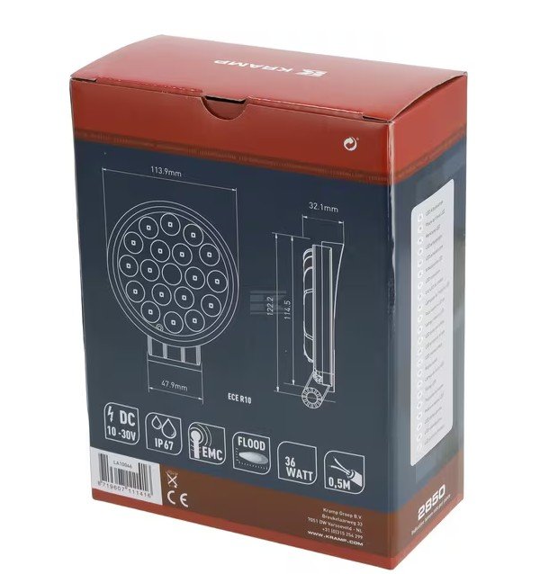 Phare de travail LED rond 36W 2850lm, 10/30V, Ø 113.9mm