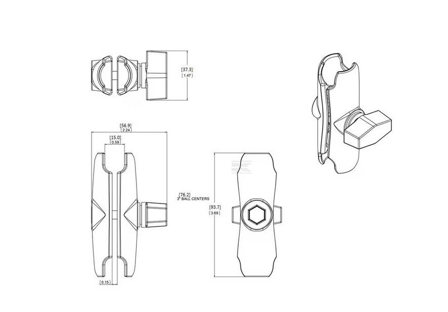- Diamètre de la boule B : 1'' (25,4 mm) RAM