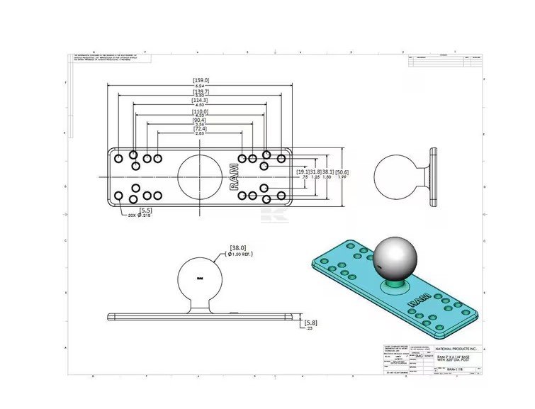 - Diamètre de la boule C : 1,5'' (38,1 mm) RAM