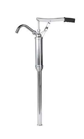 POMPE DE TRANSVASEMENT A LEVIER, BEC ACIER, CANNE TELESCOPIQUE ET COUDE ACIER POUR FUT DE 60/200/220L POUR HUILE, GRAISSE, HYDRAULIQUES, PETROLE ET FUEL.