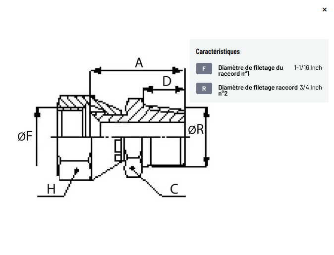 𝐑 𝐃𝐢𝐚𝐦𝐞̀𝐭𝐫𝐞 𝐝𝐞 𝐟𝐢𝐥𝐞𝐭𝐚𝐠𝐞 𝐫𝐚𝐜𝐜𝐨𝐫𝐝 𝐧°𝟐 : 3/4 Inch