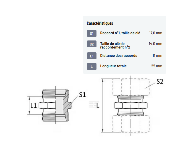𝐒𝟐 𝐓𝐚𝐢𝐥𝐥𝐞 𝐝𝐞 𝐜𝐥𝐞́ 𝐝𝐞 𝐫𝐚𝐜𝐜𝐨𝐫𝐝𝐞𝐦𝐞𝐧𝐭 𝐧°𝟐 : 14.0 mm