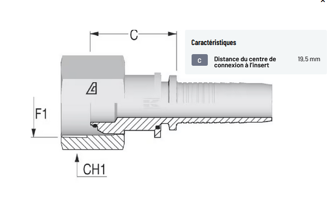 𝐅𝐨𝐫𝐦𝐞 : Droit 𝐓𝐲𝐩𝐞 𝐝𝐞 𝐫𝐚𝐜𝐜𝐨𝐫𝐝 𝐧°𝟏 : Extrémité de tuyau 𝐓𝐲𝐩𝐞 𝐝𝐞 𝐫𝐚𝐜𝐜𝐨𝐫𝐝 𝐧°𝟏 : Mâle 𝐃𝐢𝐚𝐦𝐞̀𝐭𝐫𝐞 𝐫𝐚𝐜𝐜𝐨𝐫𝐝 𝐧°𝟏 : 1/4 Inch 𝐃𝐢𝐚𝐦𝐞̀𝐭𝐫𝐞 𝐫𝐚𝐜𝐜𝐨𝐫𝐝 𝐧°𝟏 : 6 mm 𝐋𝐨𝐧𝐠𝐮𝐞𝐮𝐫 𝐫𝐚𝐜𝐜𝐨𝐫𝐝 𝐧°𝟏 : 19,5 mm 𝐓𝐲𝐩𝐞 𝐝𝐞 𝐫𝐚𝐜𝐜𝐨𝐫𝐝 𝐧°𝟐 : Écrou tournant 𝐓𝐲𝐩𝐞 𝐝𝐞 𝐫𝐚𝐜𝐜𝐨𝐫𝐝 𝐧°𝟐 : Femelle 𝐃𝐢𝐚𝐦𝐞̀𝐭𝐫𝐞 𝐝𝐞 𝐟𝐢𝐥𝐞𝐭𝐚𝐠𝐞 𝐫𝐚𝐜𝐜𝐨𝐫𝐝 𝐧°𝟐 : 3/8 Inch 𝐑𝐚𝐜𝐜𝐨𝐫𝐝 𝐧° 𝟐 𝐧𝐨𝐦𝐛𝐫𝐞 𝐝𝐞 𝐟𝐢𝐥𝐞𝐭 𝐚𝐮 𝐩𝐨𝐮𝐜𝐞 : 19 𝐓𝐲𝐩𝐞 𝐝𝐞 𝐟𝐢𝐥𝐞𝐭𝐚𝐠𝐞 𝐫𝐚𝐜𝐜𝐨𝐫𝐝 𝐧°𝟐 : BSP 𝐀𝐧𝐠𝐥𝐞 𝐝𝐮 𝐜𝐨̂𝐧𝐞 : 60 ° 𝐂𝐨𝐝𝐞 𝐝𝐞 𝐭𝐲𝐩𝐞 𝐝𝐞 𝐜𝐨𝐧𝐧𝐞𝐱𝐢𝐨𝐧 𝐧° 𝟐 : DKOR 𝐂𝐥𝐞́ 𝐝𝐞 𝐜𝐨𝐧𝐧𝐞𝐱𝐢𝐨𝐧 𝐧° 𝟐 : 22 mm 𝐂 𝐃𝐢𝐬𝐭𝐚𝐧𝐜𝐞 𝐝𝐮 𝐜𝐞𝐧𝐭𝐫𝐞 𝐝𝐞 𝐜𝐨𝐧𝐧𝐞𝐱𝐢𝐨𝐧 𝐚̀ 𝐥’𝐢𝐧𝐬𝐞𝐫𝐭 : 19,5 mm 𝐇𝐚𝐮𝐭𝐞𝐮𝐫 : 22 mm
