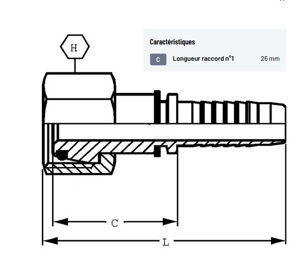 𝐓𝐲𝐩𝐞 𝐝𝐞 𝐫𝐚𝐜𝐜𝐨𝐫𝐝 𝐧°𝟏 : Écrou tournant / Cône de joint torique