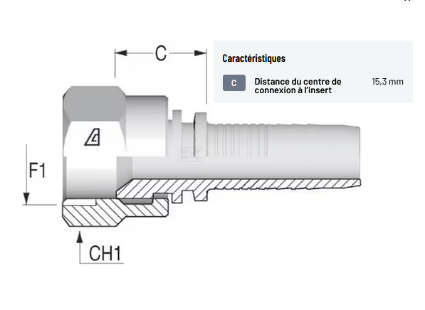 𝐂 𝐃𝐢𝐬𝐭𝐚𝐧𝐜𝐞 𝐝𝐮 𝐜𝐞𝐧𝐭𝐫𝐞 𝐝𝐞 𝐜𝐨𝐧𝐧𝐞𝐱𝐢𝐨𝐧 𝐚̀ 𝐥’𝐢𝐧𝐬𝐞𝐫𝐭 : 15,3 mm
