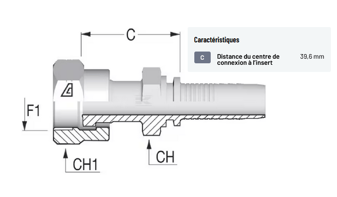 𝐂 𝐃𝐢𝐬𝐭𝐚𝐧𝐜𝐞 𝐝𝐮 𝐜𝐞𝐧𝐭𝐫𝐞 𝐝𝐞 𝐜𝐨𝐧𝐧𝐞𝐱𝐢𝐨𝐧 𝐚̀ 𝐥’𝐢𝐧𝐬𝐞𝐫𝐭 : 39,6 mm