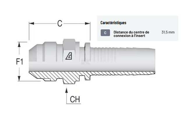 𝐂 𝐃𝐢𝐬𝐭𝐚𝐧𝐜𝐞 𝐝𝐮 𝐜𝐞𝐧𝐭𝐫𝐞 𝐝𝐞 𝐜𝐨𝐧𝐧𝐞𝐱𝐢𝐨𝐧 𝐚̀ 𝐥’𝐢𝐧𝐬𝐞𝐫𝐭 : 31,5 mm