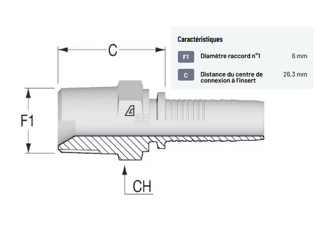 𝐅𝐨𝐫𝐦𝐞 : Droit 𝐓𝐲𝐩𝐞 𝐝𝐞 𝐫𝐚𝐜𝐜𝐨𝐫𝐝 𝐧°𝟏 : Extrémité de tuyau 𝐓𝐲𝐩𝐞 𝐝𝐞 𝐫𝐚𝐜𝐜𝐨𝐫𝐝 𝐧°𝟏 : Mâle 𝐃𝐢𝐚𝐦𝐞̀𝐭𝐫𝐞 𝐫𝐚𝐜𝐜𝐨𝐫𝐝 𝐧°𝟏 : 1/4 Inch 𝐅𝟏 𝐃𝐢𝐚𝐦𝐞̀𝐭𝐫𝐞 𝐫𝐚𝐜𝐜𝐨𝐫𝐝 𝐧°𝟏 : 6 mm 𝐓𝐲𝐩𝐞 𝐝𝐞 𝐫𝐚𝐜𝐜𝐨𝐫𝐝 𝐧°𝟐 : Filetage conique 𝐓𝐲𝐩𝐞 𝐝𝐞 𝐫𝐚𝐜𝐜𝐨𝐫𝐝 𝐧°𝟐 : Mâle 𝐃𝐢𝐚𝐦𝐞̀𝐭𝐫𝐞 𝐝𝐞 𝐟𝐢𝐥𝐞𝐭𝐚𝐠𝐞 𝐫𝐚𝐜𝐜𝐨𝐫𝐝 𝐧°𝟐 : 1/4 Inch 𝐑𝐚𝐜𝐜𝐨𝐫𝐝 𝐧° 𝟐 𝐧𝐨𝐦𝐛𝐫𝐞 𝐝𝐞 𝐟𝐢𝐥𝐞𝐭 𝐚𝐮 𝐩𝐨𝐮𝐜𝐞 : 19 𝐓𝐲𝐩𝐞 𝐝𝐞 𝐟𝐢𝐥𝐞𝐭𝐚𝐠𝐞 𝐫𝐚𝐜𝐜𝐨𝐫𝐝 𝐧°𝟐 : BSP 𝐂𝐨𝐝𝐞 𝐝𝐞 𝐭𝐲𝐩𝐞 𝐝𝐞 𝐜𝐨𝐧𝐧𝐞𝐱𝐢𝐨𝐧 𝐧° 𝟐 : AGR K 𝐂 𝐃𝐢𝐬𝐭𝐚𝐧𝐜𝐞 𝐝𝐮 𝐜𝐞𝐧𝐭𝐫𝐞 𝐝𝐞 𝐜𝐨𝐧𝐧𝐞𝐱𝐢𝐨𝐧 𝐚̀ 𝐥’𝐢𝐧𝐬𝐞𝐫𝐭 : 26,3 mm