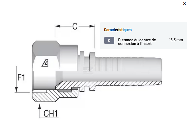 𝐂 𝐃𝐢𝐬𝐭𝐚𝐧𝐜𝐞 𝐝𝐮 𝐜𝐞𝐧𝐭𝐫𝐞 𝐝𝐞 𝐜𝐨𝐧𝐧𝐞𝐱𝐢𝐨𝐧 𝐚̀ 𝐥’𝐢𝐧𝐬𝐞𝐫𝐭 : 15,3 mm