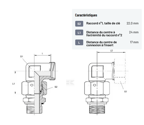 𝐒𝟐 𝐑𝐚𝐜𝐜𝐨𝐫𝐝 𝐧°𝟏, 𝐭𝐚𝐢𝐥𝐥𝐞 𝐝𝐞 𝐜𝐥𝐞́ : 22.0 mm