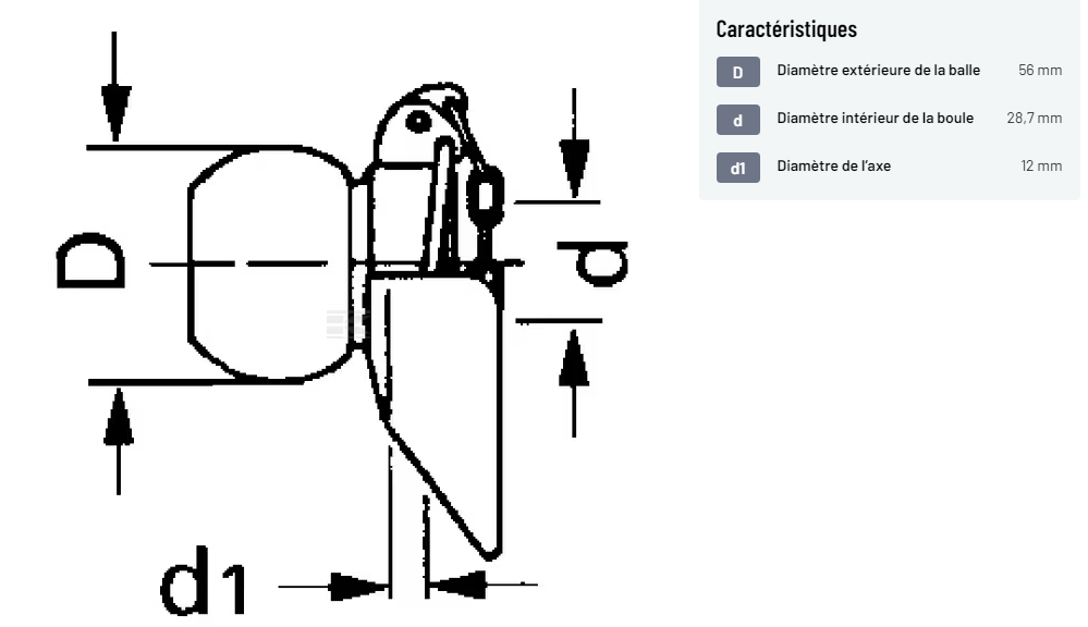 𝐝 : Diamètre intérieur de la boule : 28,7 mm
