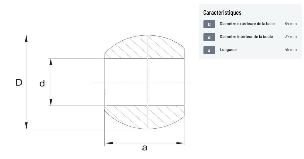 𝐂𝐚𝐭𝐞́𝐠𝐨𝐫𝐢𝐞 3 𝐃 : Diamètre extérieure de la balle : 64 mm 𝐝 : Diamètre intérieur de la boule : 37 mm 𝐚 : Longueur : 45 mm