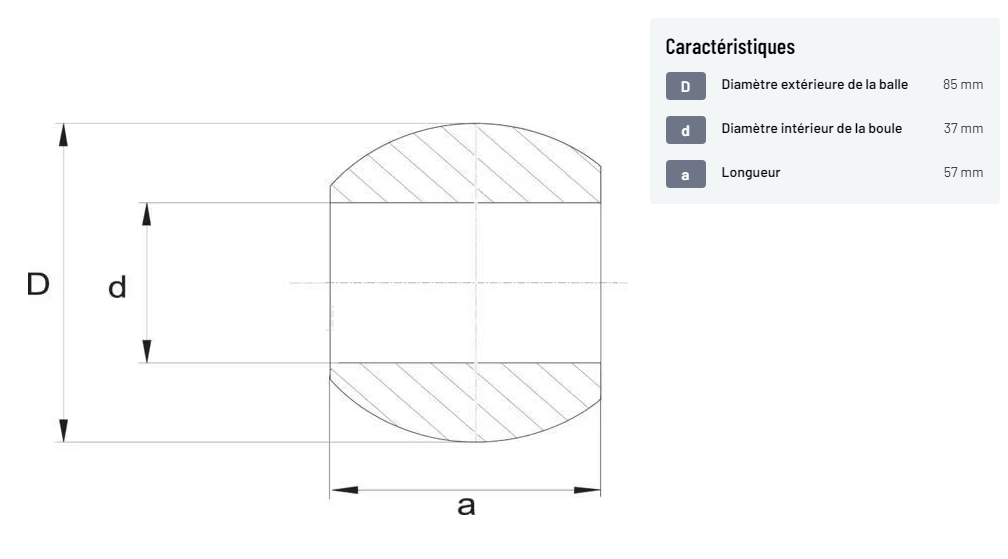 𝐝 : Diamètre intérieur de la boule : 37 mm