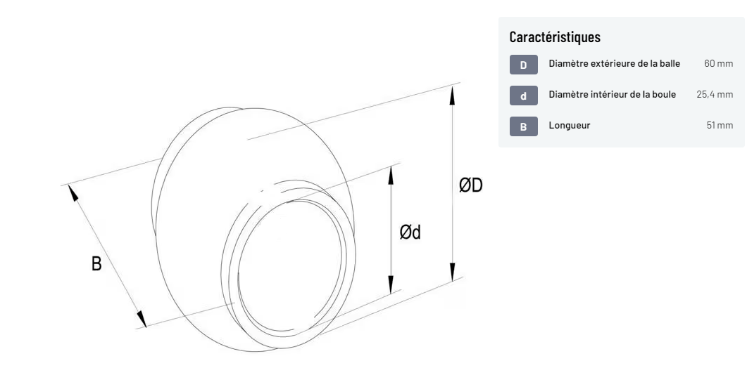 𝐝 : Diamètre intérieur de la boule : 25.4 mm