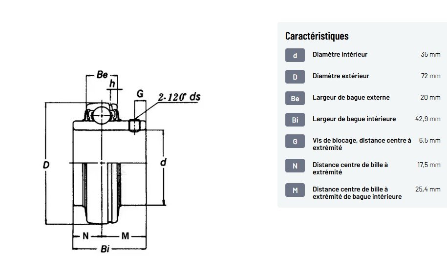 𝐌 : 𝐃𝐢𝐬𝐭𝐚𝐧𝐜𝐞 𝐜𝐞𝐧𝐭𝐫𝐞 𝐝𝐞 𝐛𝐢𝐥𝐥𝐞 𝐚̀ 𝐞𝐱𝐭𝐫𝐞́𝐦𝐢𝐭𝐞́ 𝐝𝐞 𝐛𝐚𝐠𝐮𝐞 𝐢𝐧𝐭𝐞́𝐫𝐢𝐞𝐮𝐫𝐞 : 25.4 mm