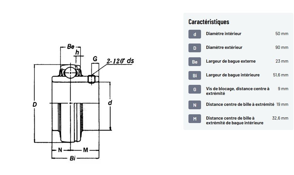 𝐍 : 𝐃𝐢𝐬𝐭𝐚𝐧𝐜𝐞 𝐜𝐞𝐧𝐭𝐫𝐞 𝐝𝐞 𝐛𝐢𝐥𝐥𝐞 𝐚̀ 𝐞𝐱𝐭𝐫𝐞́𝐦𝐢𝐭𝐞́ : 19 mm
