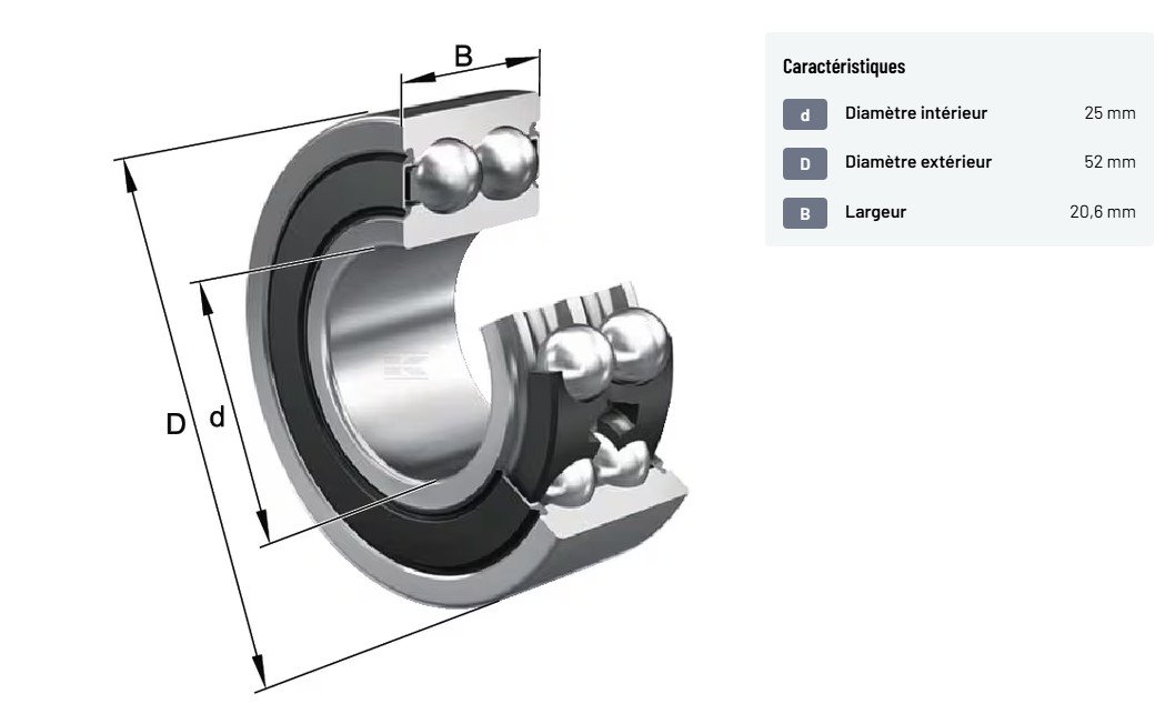 Roulement à billes à contact oblique 25x52x20.6mm