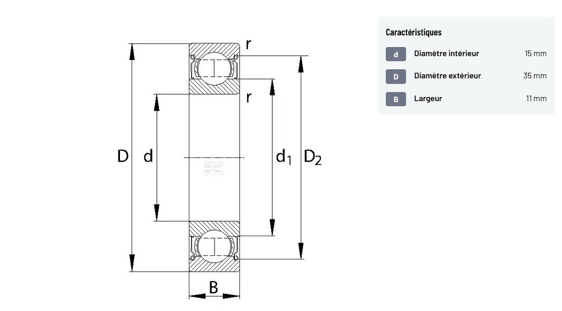Roulement à billes à gorge profonde 15x35x11mm
