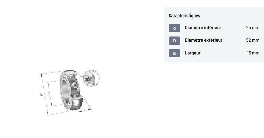 Roulement à billes à gorge profonde 25x52x15mm