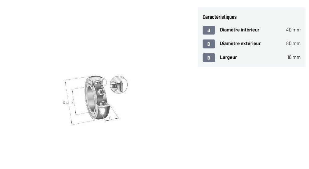 Roulement à billes à gorge profonde 40x80x18mm