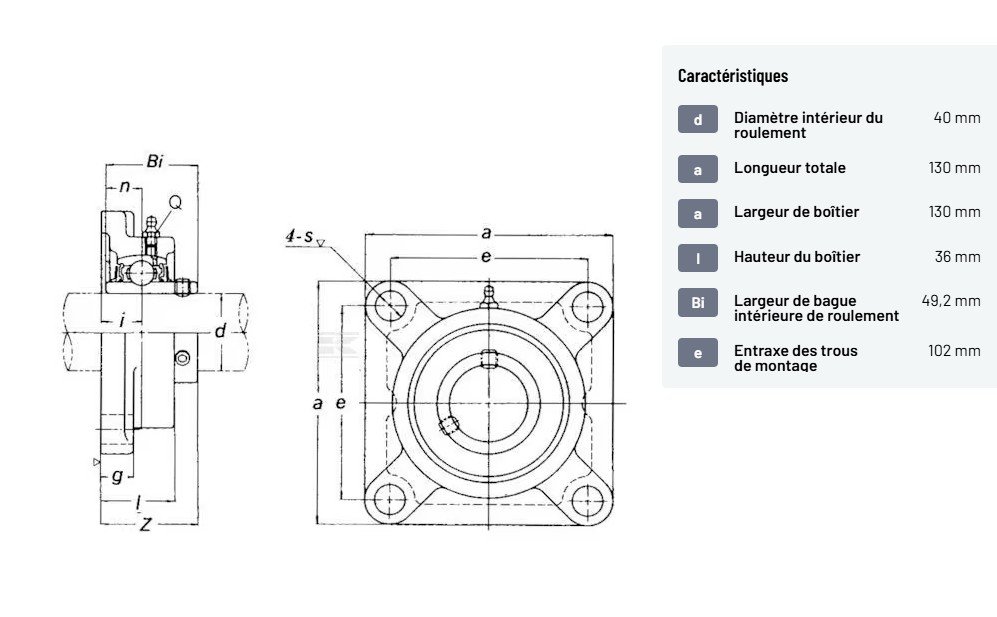 Roulement à flasque carré cpl.
