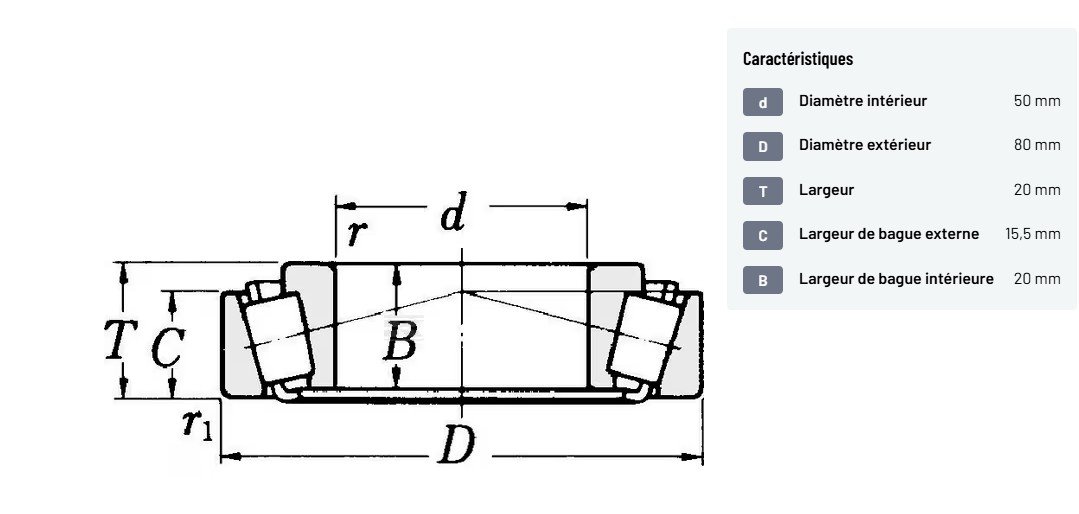 Roulement à rouleaux coniques 50x80x20mm
