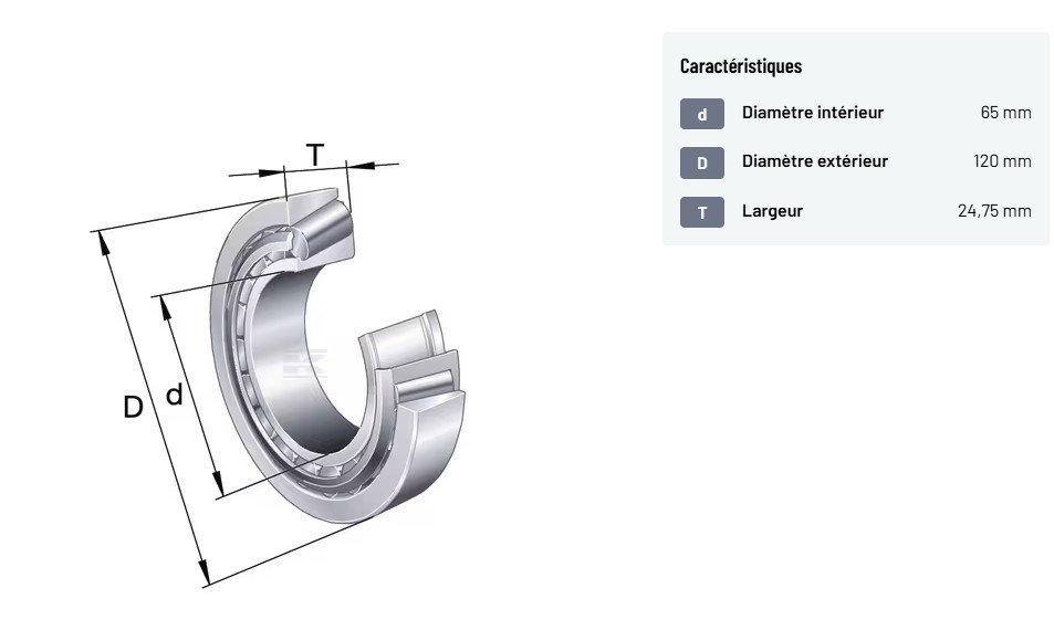 Roulement à rouleaux coniques 65x120x24.75mm