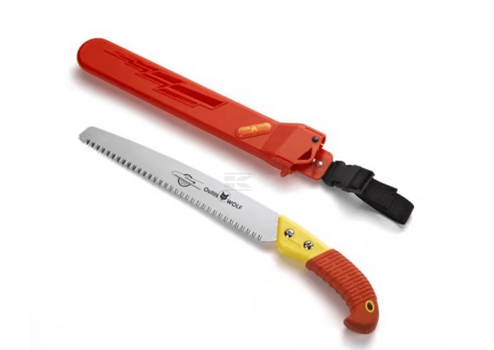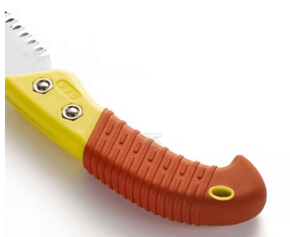 La scie à tronçonner est équipée d'une lame de scie en acier japonais de haute qualité et peut être utilisée pour toutes sortes de travaux d'élagage sur les arbres et les arbustes. La lame a une géométrie évasée et une forme de dent dentelée. Cette forme de dent et la surface de contact réduite qui en résulte permettent un sciage très rapide et facile. La couche antidérapante confortable optimise la prise en main.