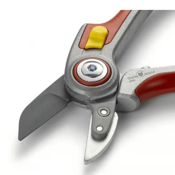 Ces sécateurs font partie de la gamme « Premium » d'Outils Wolf. La tête de coupe a un angle de travail optimal, ce qui soulage les poignets. Les lames en acier trempé sont équipées d'un coupe-fil et sont traitées pour les protéger contre l'usure et la corrosion. Les poignées de forme ergonomique, en aluminium forgé, offrent confort et robustesse. Le mécanisme de la lame assure une coupe efficace.