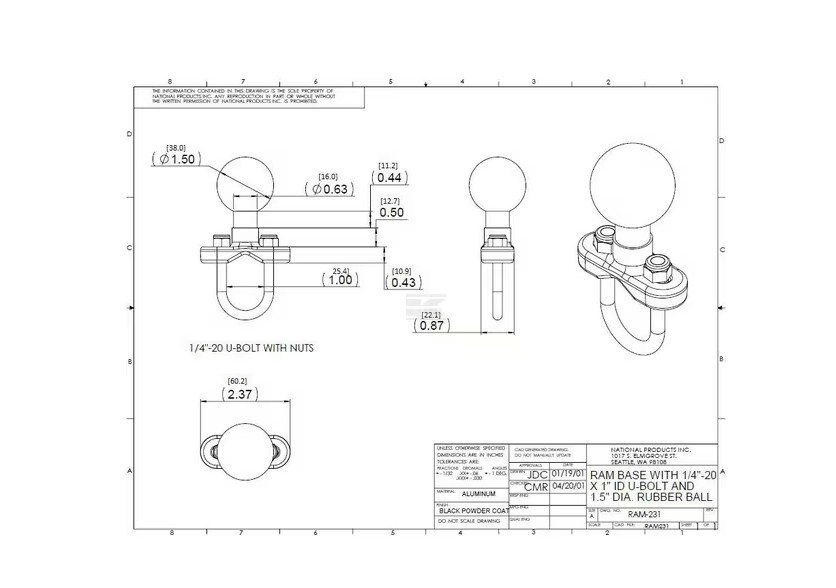 - Diamètre de la boule C : 1,5'' (38,1 mm) RAM
