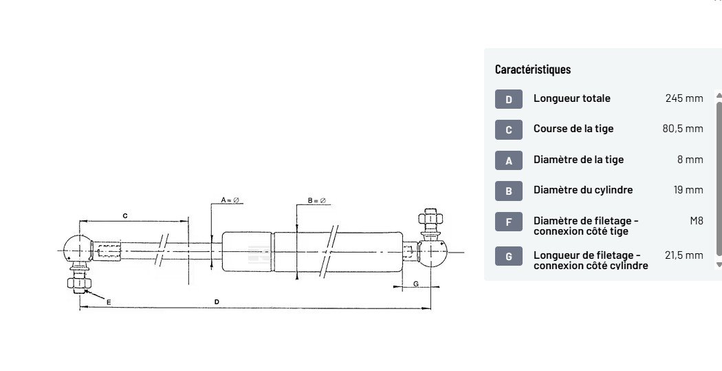 𝐆 : 𝐋𝐨𝐧𝐠𝐮𝐞𝐮𝐫 𝐝𝐞 𝐟𝐢𝐥𝐞𝐭𝐚𝐠𝐞 - 𝐜𝐨𝐧𝐧𝐞𝐱𝐢𝐨𝐧 𝐜𝐨̂𝐭𝐞́ 𝐜𝐲𝐥𝐢𝐧𝐝𝐫𝐞 : 21.5 mm