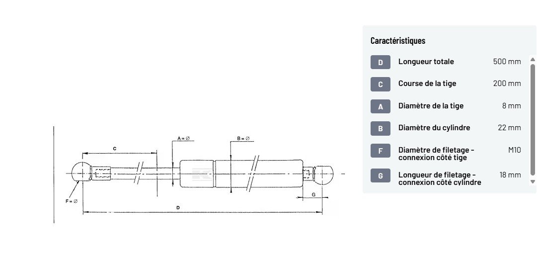 𝐆 : 𝐋𝐨𝐧𝐠𝐮𝐞𝐮𝐫 𝐝𝐞 𝐟𝐢𝐥𝐞𝐭𝐚𝐠𝐞 - 𝐜𝐨𝐧𝐧𝐞𝐱𝐢𝐨𝐧 𝐜𝐨̂𝐭𝐞́ 𝐜𝐲𝐥𝐢𝐧𝐝𝐫𝐞 : 18 mm